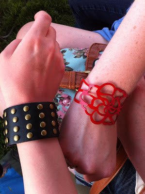 | We went to the fair by our old High School and bought theseawesome cuffs! Only $5 each! And very suited to our personalities. |